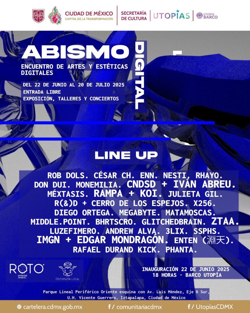 Esta primera oleada concluye el último domingo de julio con varios actos en vivo que se presentan en la sala inmersiva, en punto de las siete de la noche. Vas a ver visuales, experimentar entornos sensoriales y escuchar set dj en vivo, pero lo más importante es llevarte a casa la sensación de que artistas emergentes y consagrados jóvenes trabajan en conjunto por llevar la cultura a todos los rincones.