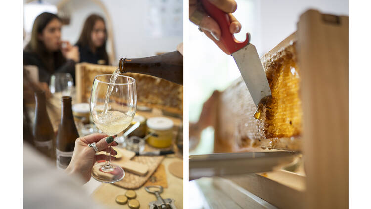 Acompañada de un picnic en medio de un entorno natural y fresco, la cata se convierte en un diálogo íntimo con la naturaleza. Es una pausa que remite a la tierra, al ritmo de las estaciones y al trabajo silencioso de las abejas.